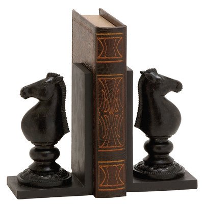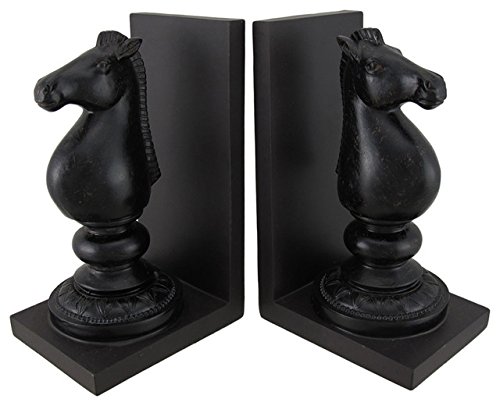 Studio : bellaa Publisher : bellaa Binding : Kitchen Product Description Are you in search of cool bookends? Is Chess your favorite game? Well, these are bookends whose value will be fully appreciated after they are added to the bookshelf. With a two Horses from the chess board on the bookend frames this creation will be very useful for someone who has a bookshelf that has books that are always falling off. They will hold your books stacked together in place. They will go perfectly with a home that has modern or traditional themes. They quality is topnotch and hence they will last in great condition for years. They are a sure way of adding elegance to your decor. They can also be gifted to someone who borrows books from the library regularly. Indeed, these Bookends are delightful creations you will love owning. This set of Royal Chess pair light weight bookends is a wonderful addition to any bookshelf, mantel, desk, or table in your home or office. Made of cold cast resin, each measures 8 in tall, 5 in long, and 2.5 in wide. Pair of 8 inch new traditional rustic polystone chess piece bookends, walnut brown stain-finish l-shape bookends, oversize black polystone chess set pieces mounted to bases. The bookends have glossy bronze finish that make them look like metal. This set is a lovely gift for the avid reader in your life, and is sure to be admired. 0