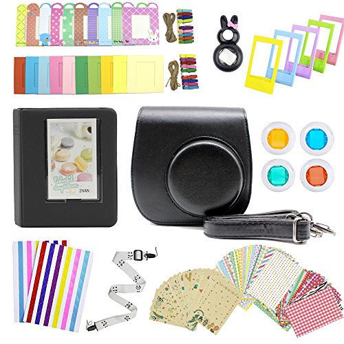Hamsing Fujifilm Instax Mini 9 Mini 8/8+ Accessories, 12 in 1 Camera Bundles Set Include Camera Case/Album/Selfie Lens/Colored Filters/Hang Frames/Film Frames/Border Stickers/strap (Black)