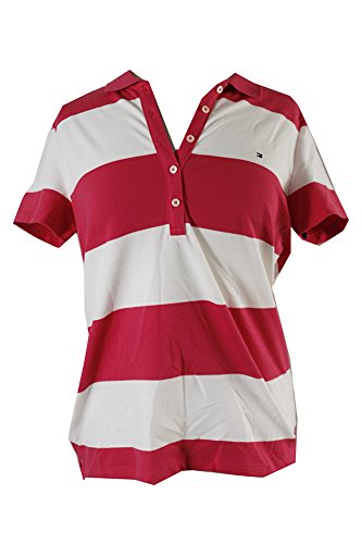 -. Title : Tommy Hilfiger Pink White Short-Sleeve Rugby-Stripe Polo Shirt M