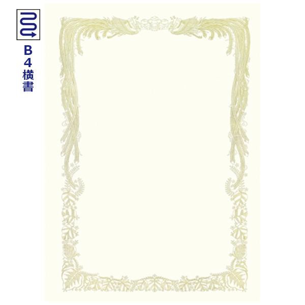 美しい金粉印刷を施した格調高い賞状用紙。深みのある気品と風格が縁飾りに表現されています。業務用100枚仕立て。 製造国:日本 素材・材質:ケント紙(209g/m2) 商品サイズ:H364×W264mm 仕様:包装形態:100枚箱入紙厚:0.24mm白色度:74~76%以下 ※サプライヤー直送品 ご注文後2~3営業日後の出荷となります【商品名】ササガワ タカ印 10-38 賞状用紙 ケント紙 B4判横書用 100枚