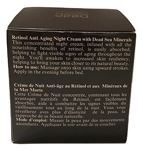 Deep From The Sea Retinol Anti-Aging Night Cream, 1.69 fl. oz. Made in Israel, 1.69 fl. oz. 50 ml. With Dead Sea Minerals and Vitamin A. Vitamin Rich, Wrinkle Fighter, Antioxidant Power. Easily absorbed, Retinol improves skin resiliency.Feature
