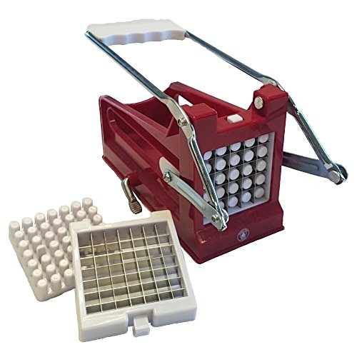 QUALITY YOU CAN TRUST – At Designer Home, quality and customer satisfaction is our top priority. We are proud to introduce the second generation of our French fry cutter and vegetable slicer machine is designed to stand up to regular home use. It includes two stainless steel blades to make large or small fries, and vegetable spears. The construction is sturdy impact resistant red BPA FREE plastic. The operating gears have been re-enforced from the original design.
