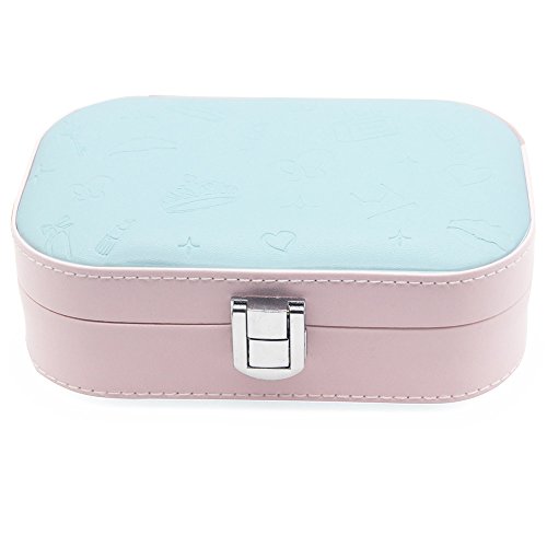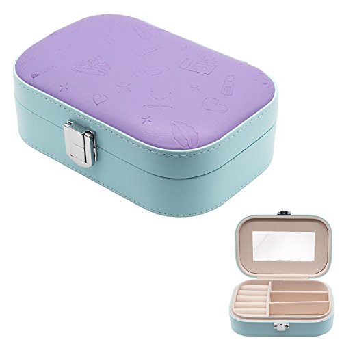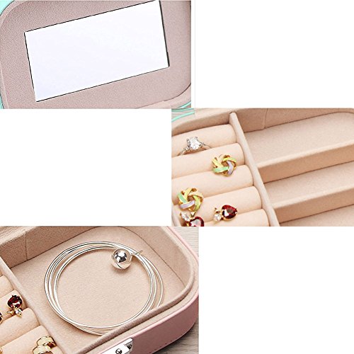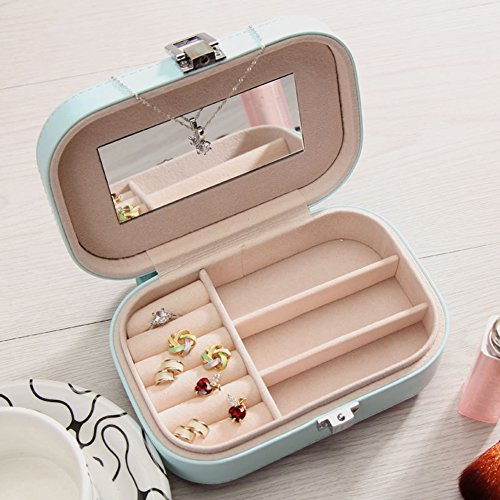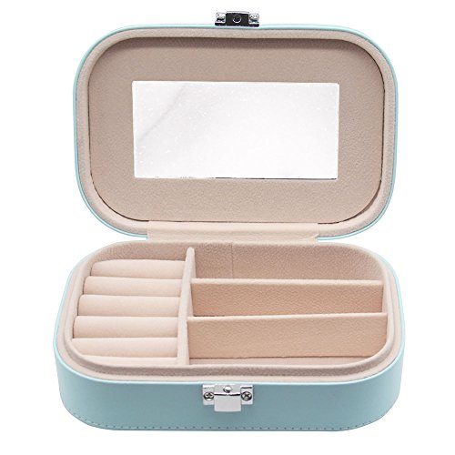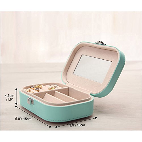 -. Feature : DIMENSION ---5.9" (L) x 3.9" (W) x 1.8" (H)/ 15 cm (L) x 10 cm (W) x 4.5 cm (H). Exquisite small size to be put into your handbag. / MATERIAL --- Small cute jewelry organizer, made of medium density fiberboard and covered with PU leather, Soft beige velvet Lining and a metal snap-on lock. Lightweight to carry, easy to clean and maintain, protect your jewelry inside against dust, fingerP.R.Ints and scratches. / FASHION DESIGN --- Compact design with good looking. Built in a mirror offers convenience when dressing up yourself. Two removable dividers to meet different needs. 6 fine wavy sponges suitable for holding earrings, rings etc / ORGANIZE YOUR JEWELRY --- Collection for rings, necklaces, bracelets, earrings, ear studs, hairpins, cufflinks, etc. (Please Note that Jewelry and Accesseries are NOT INCLUDED!) / GIFT CHOICE - Perfect for journey, travel, weekend trip or business trip. Best for holding small daily wear jewelry and keep them organized by the bedside before sleep. Great Gift for your mother, girlfriend , wife, daughter, colleague, friend or for birthday anniversary wedding christmas graduation mothers-day valentines-day occasions