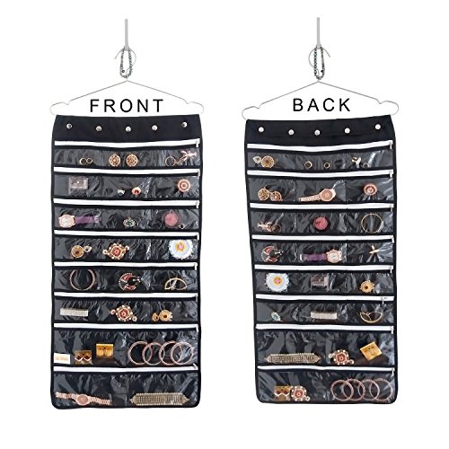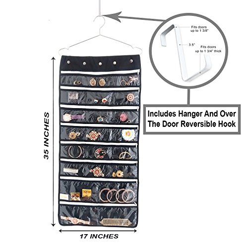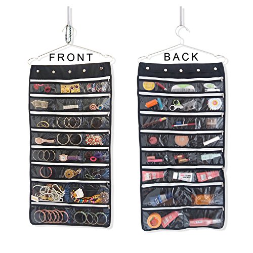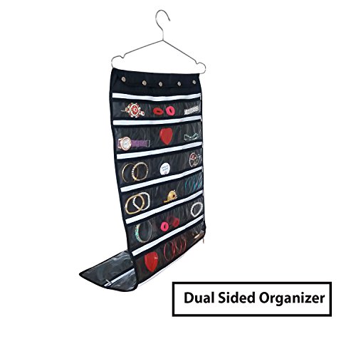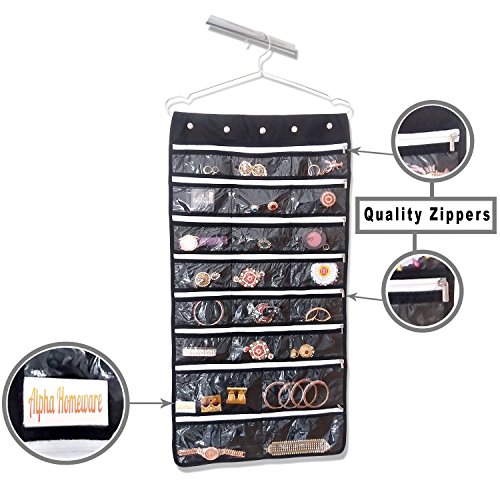 -. Binding : Kitchen -. Brand : Alpha Homeware -. Color : Black -. EAN : 0646437409438 -. Feature : TRANSPARENT POCKETS with CONVENIENT ACCESS that will SAVE YOU TIME! - Allows you to quickly identify all your favourite jewelry at a glance without frantically rummaging around. Perfect for when you are in a rush making it easy to find the ideal jewelry to match your outfit. / DECLUTTER YOUR DRESSER - This will keep your dresser space free from piled up overcrowded jewlery boxes. This dual sided organizer with 44 pockets measuring 35 inches in length by 17 inches in width is the perfect solution to optimise space whilst making it easier to find your items on the GO! / PORTABLE & ZIPPED - This stylish premium quality organizer includes durable zippers that run across each row of pockets to keep your valuable jewlery secured in their place & free from dust. Hanger can be removed making it easy to roll up or fold into a compact package that is fully transportable whilst the zippers keep the items intact & safe! / MULTI PURPOSE - This two sided organizer consists of 22 pockets on each side with a total of 44 pockets providing you with ample space for all your accessories in one handy place. Pockets come in various sizes enabling them to hold a variety of items ranging from earrings to hair accessories to nail vanish! / EASY TO HANG - Includes a sturdy pretty hanger which can hang from closet rail or hook & support a fully packed organizer. Includes a BONUS OVER the DOOR HOOK which not only hangs the organizer from a door but can also be used to hang necklaces & chains preventing them from tangling! -. IsAutographed : 0 -. Label : Alpha Homeware -. Manufacturer : Alpha Homeware -. Model : HJO44 -. MPN : B01HH00276 -. PackageQuantity : 1 -. PartNumber : B01HH00276 -. ProductGroup : Home -. ProductTypeName : HOME -. Publisher : Alpha Homeware -. Size : 44 Pockets -. Studio : Alpha Homeware -. Title : Hanging Jewelry Organizer 44 Zipper Pockets, Hanger & Door Hanging Hook! stores Jewelry, Accessories, Cosmetics, Makeup & Toiletries. Durable Double Sided Storage Saves Space -. UPC : 646437409438