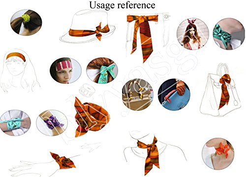 -. Feature : Multifunction use small scarf, such as use for hand bag decoration, head band, also can be use neck scarf to match any clothes / So many color for your choice / Material: silk, good touch feeling / Fashion accessories for women to daily use during four seasons / Scarves Length: 80cm-100cm (31.49"-39.37")