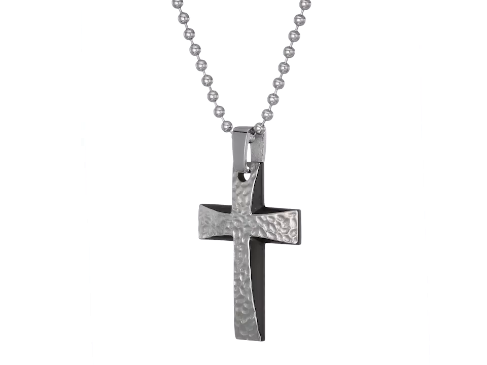 Men's Two-Tone Stainless Steel Hammered Texture Cross Pendant Necklace, 22"