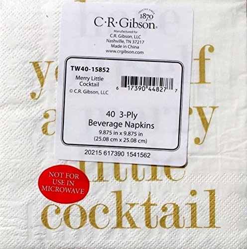 -. Title : CR Gibson Set of 40 Cocktail Beverage Paper Napkins ~ Gold Foil Merry Little Cocktail