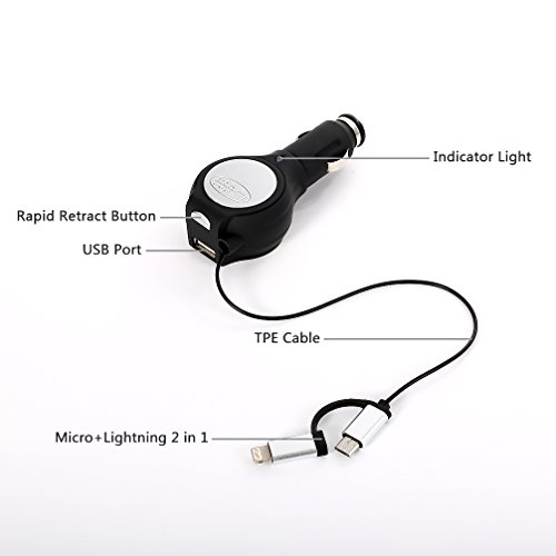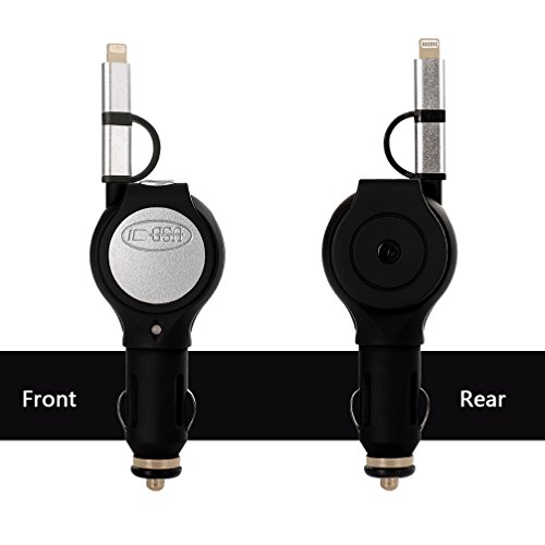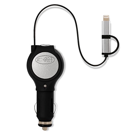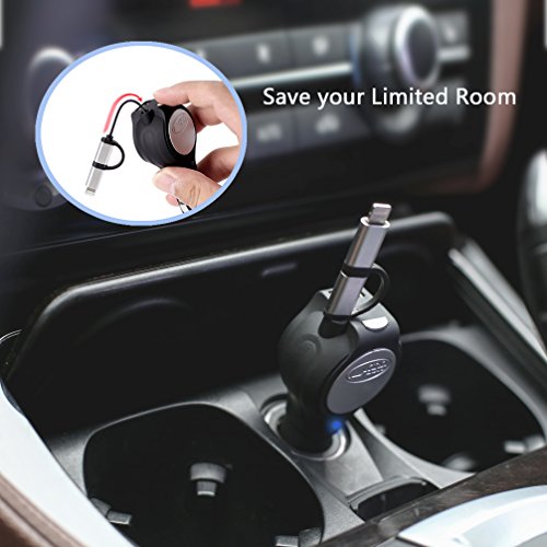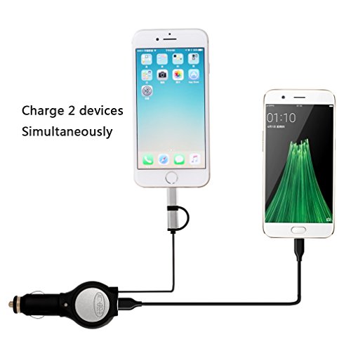 SKYSON Retractable iPhone 8 iPhone 8 Plus iPhone X Car Charger with Lightning and Micro 2 in 1 Cable Quick Charge 3.1A