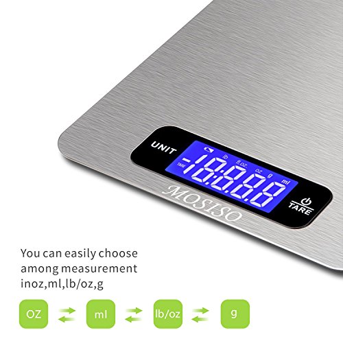 Mosiso - Digital Kitchen Food Scale in Refined Stainless Steel Multifunction with Fingerprint Resistant Coating (11 lbs Edition)