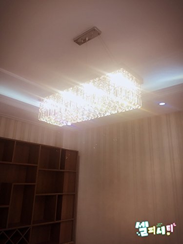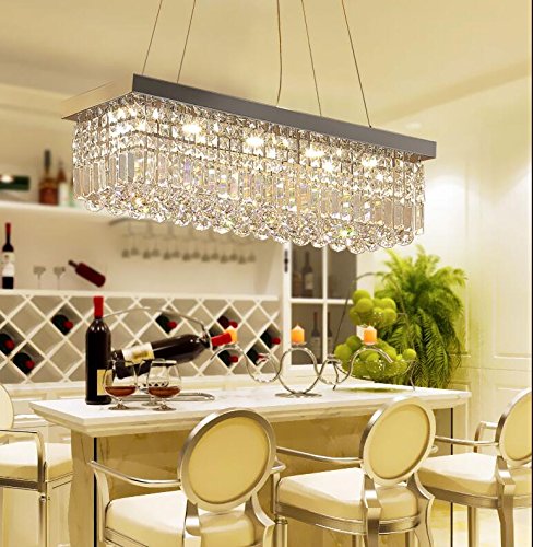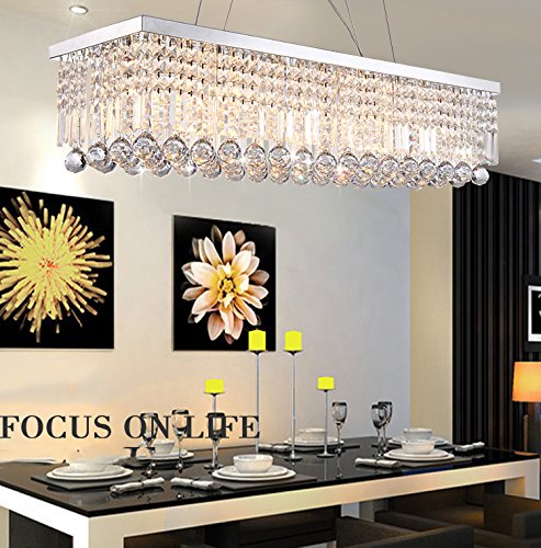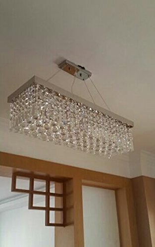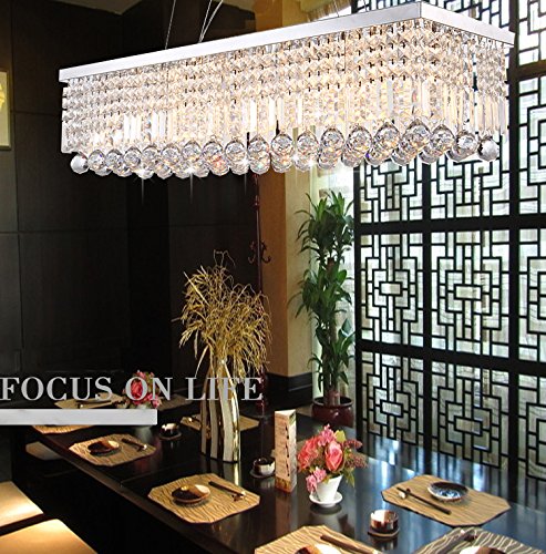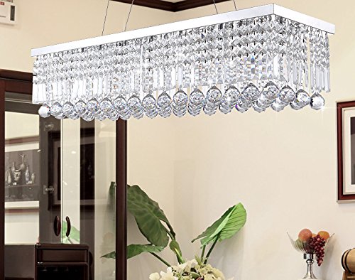 Siljoy Rectangular Crystal Chandelier Lighting Modern Pendant Lights for Dining Room, Polished Finish L31.5" x W9.9" x H8.9"