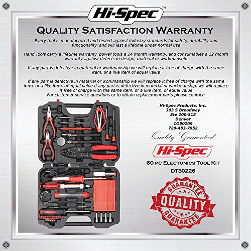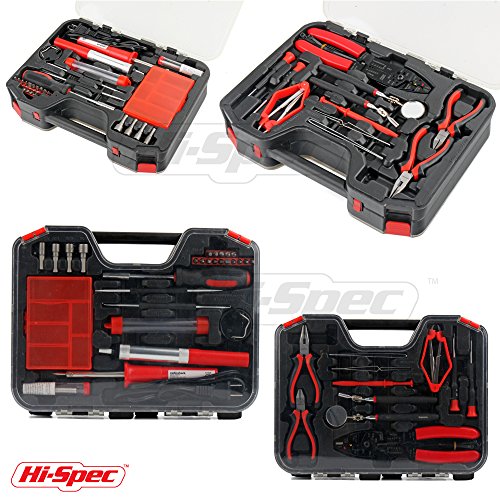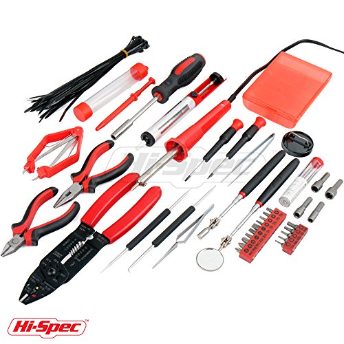 Hi-Spec 60 Piece Electronics Electrical Tool Kit Set with 30W Soldering Iron and Precision Tools in Storage Case for PC, Computer, Car, Home, Office, Audio, Video Repair & Maintenance