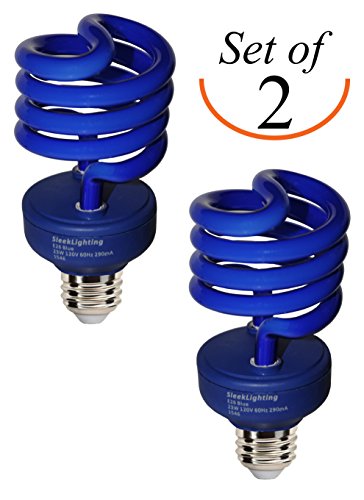 SleekLighting 23 Watt T2 BLUE Light Spiral CFL Light Bulb, 120V, E26 Medium Base-Energy Saver (Pack of 2)