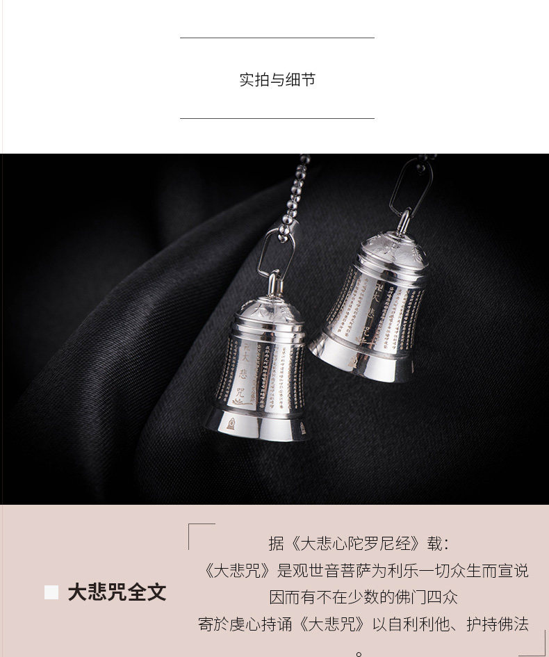 大悲咒挂件梵铃铛吊坠女开光护身符 情侣钛钢项链男