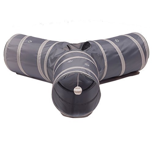 - BEST WAYS TO PLAY: With 3 spacious tunnels, built-in crinkle crackle paper, peephole & bell toy, this popular tunnel chute gives your kitty more ways to have fun. Provides hours of exercise & self-amusement.