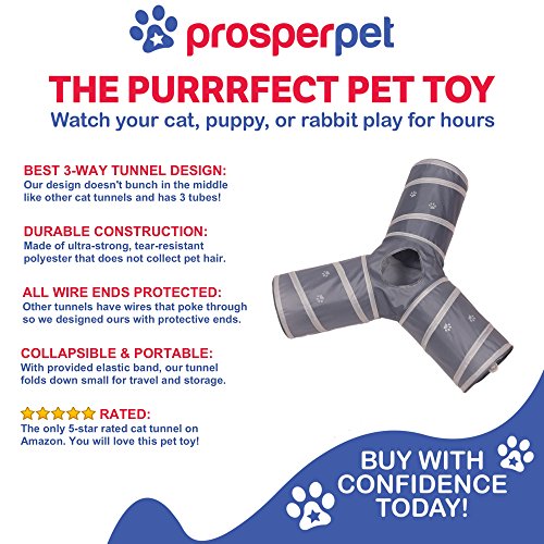 Prosper Pet Cat Tunnel - Collapsible 3 Way Play Toy - Tube Fun for Rabbits, Kittens, and Dogs