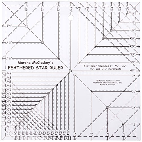 - Feathered Star rulers 8.5with 8th & 16th lines- Acrylic template developed for precision cutting of patterns, this 8 1/2Ruler is marked for cutting 1, 1/2, 1/4, 1/8, and 1/16increments