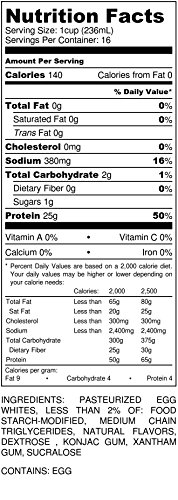 -. Feature : Pure Liquid Egg Whites that are 100% bio-available - Nature's highest quality source of protein helps you build muscle, feel full longer, and stay energized. / 25 grams of protein per serving, 0 grams cholesterol, 0 grams fat, 2 grams carbs per serving. / Pasteurized and filtered to be smooth and easy to drink straight! And because MuscleEgg is a whole food, you can use it in your favorite recipes for protein shakes, pancakes, french toast, waffles, egg bakes, crepes, burritos, egg scrambles, omelettes, protein bars, and anything else that calls for egg whites! / Also available in Original (plain), Organic (plain), Chocolate, Cake Batter, Vanilla, Chocolate Caramel, Mint Brownie, Strawberry, and Pumpkin Spice (limited edition) flavors. / Drink it. Cook it. Love it. Each gallon contains approximately 14 dozen egg whites. That's 168 egg whites!