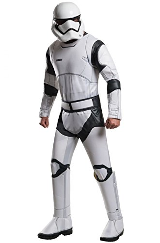 -. Binding : Apparel -. Brand : Rubie's -. ClothingSize : One Size -. Color : multi-colored -. Department : mens -. Feature : Officially licensed Star Wars Episode VII: The Force Awakens deluxe Stormtrooper costume / Available in sizes standard (42 to 44-inch jacket size, 34 to 36-inch waist) and x-large (44 to 46-inch jacket size, 36 to 40-inch waist) / Deluxe jumpsuit features molded foam armor detail and comes with a 2-piece helmet and belt / Attached 3D boot covers / Rubie's offers costumes and accessories from Star Wars original and prequel trilogies as well as the Clone Wars series; great group and family costume ideas -. Genre : TV/Movie Characters -. IsAdultProduct : 0 -. Label : Rubies Costumes - Apparel -. Manufacturer : Rubies Costumes - Apparel -. MPN : R810672 -. NumberOfItems : 1 -. PackageQuantity : 1 -. PartNumber : R810672 -. ProductGroup : Apparel -. ProductTypeName : ADULT_COSTUME -. Publisher : Rubies Costumes - Apparel -. ReleaseDate : 2015-09-11 -. Size : One Size -. Studio : Rubies Costumes - Apparel -. Title : Star Wars: The Force Awakens Deluxe Adult Stormtrooper Costume