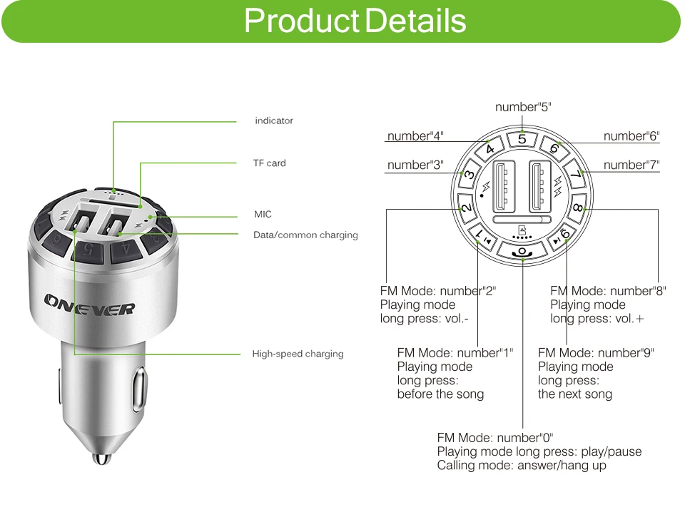 Feature 1:3.1A Dual USB Car Charger