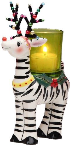 Appletree Zebra Deer With Glass Votive Holder