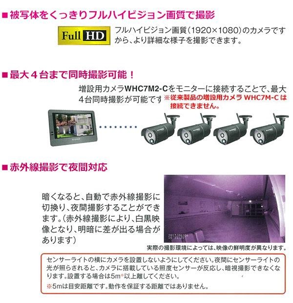 WHC7M2・WHC10M2専用の増設用カメラ単体です。モニター1台につき最大4台まで接続可能です。