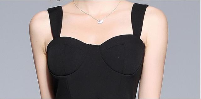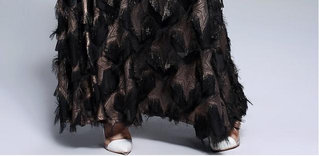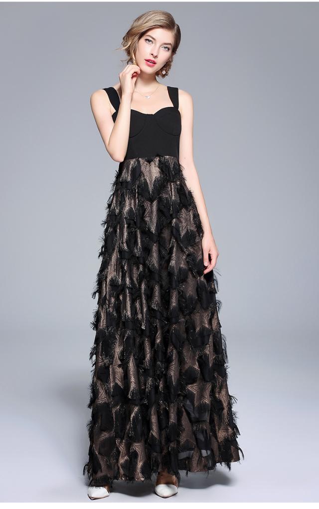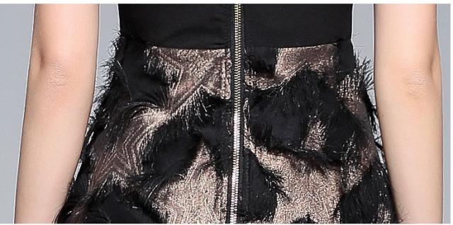 シンプルなキャミソールトップスにハートのような形になってる羽がたくさんあるスカートのワンピース。