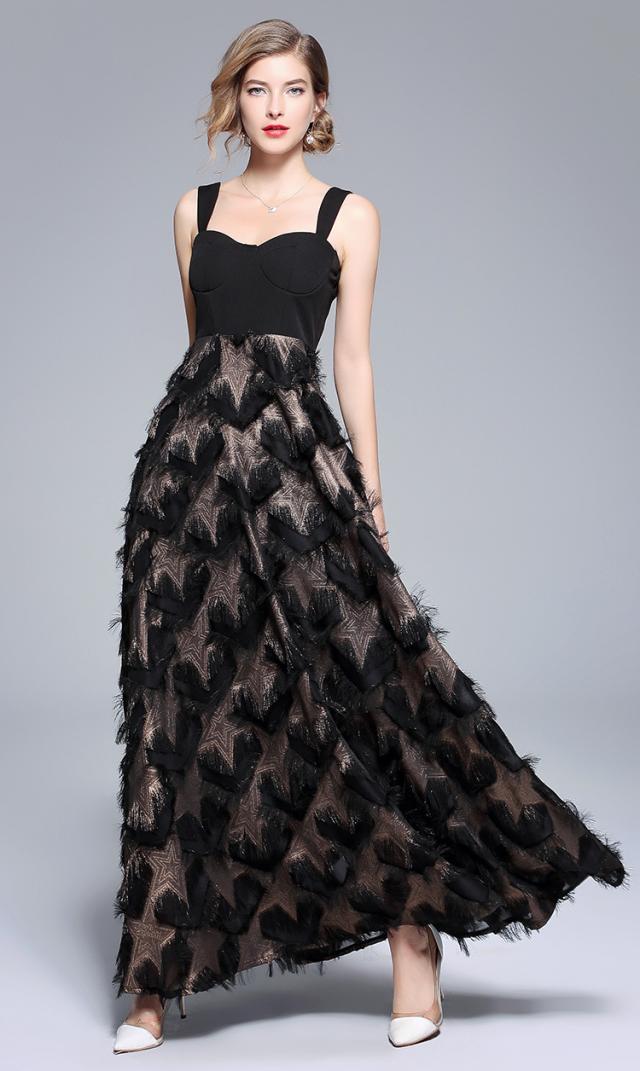 キャミソール 星柄 ハート 羽 マキシ丈 ロング ワンピース ドレス ブラトップ 女子会 ディナー デート 卒業式 演奏会
