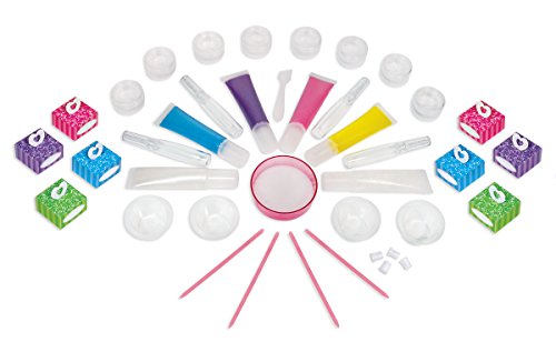 Create 12 designer lip blams and glosses that are perfect for wearing and sharing! This is a perfect kit for sleep-overs and parties. Easy-squeeze tubes allow you to create endless colors, designs and flavors. This complete kit includes 12 cosmetic containers (8 pots and 4 tubes), paraben-free lip balm base, 4 lip colors/flavors, shimmer base, pearl base, 8 adorable boutique gift boxes, and all the essential tools and supplies needed. All cosmetics and components are safety-tested and kid-friendly.Feature