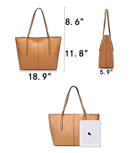 -. Feature : Material: delicate craftwork of cowhide leather. Simple designed with TWO sizes. Big size: with no straps; Small size: with an adjustable strap. / Internal structure: with several rooms to keep things well organized, 2 pocket-style organizers, 1 big zipper pocket in the middle, 2 small zippered areas. Zipper closure at top for all sizes and colors. / Practical and durable handbag with a spacious room for holding a lot of your daily essentials. FITS 15" laptop. / Excellent bag for any occasion like leisure, business, school, party, shopping, traveling, etc. Perfect gift choice. / Approximate Dimensions: Big: 18.9" Length x 5.9" Width x 11.8" Height; Small: 15.0" Length x 5.1" Width x 10.2" Height.