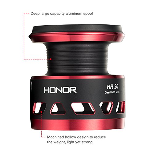 -. Binding : Misc. -. Brand : Piscifun -. Color : Black and Red -. Feature : PROFESSIONAL - Designed for saltwater & freshwater applications. Piscifun Honor Spinning Reel features everything one would expect from a legendary fishing tackle manufacture / BUTTER SMOOTH - 10 + 1 sealed bearings provide increased corrosion protection while maintaining smooth and consistent operation. Premium aluminum machined gears provides outstanding gear feel, durability and performance / HIGH POWER - Up to 22.1 lbs carbon fiber max drag. Precise stainless steel main shaft and components improve corrosion resistance while the bail system delivers improved durability / LIGHT & DURABLE - Carbon fiber rotor provides significant weight reduction without sacrificing strength or durability. Compactly CNC machined aluminum handle provides a more ergonomic design that is extremely lightweight. Large EVA knobs provide great grip with increased comfort / PERFORMANCE - An aluminum reinforced graphite body design seamlessly combines with the quality gearbox. The result is a lightweight body that houses gears in perfect alignment. The new Honor line management system provides better casting control of all types of fishing lines -. IsAutographed : 0 -. IsMemorabilia : 0 -. Label : Piscifun -. Manufacturer : Piscifun -. PackageQuantity : 1 -. ProductGroup : Sports -. ProductTypeName : SPORTING_GOODS -. Publisher : Piscifun -. Studio : Piscifun -. Title : Piscifun Honor Spinning Reel - Lightweight Ultra Smooth Powerful Spinning Fishing Reels, 10+1 Shielded Bearings, Sealed Drag, Latest Creative Technology