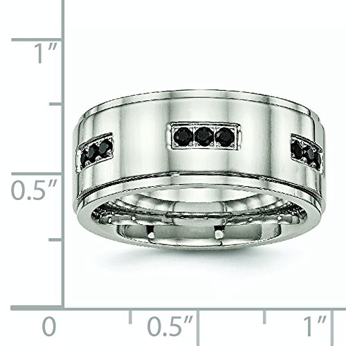 Studio : JewelryWeb Publisher : JewelryWeb Product Description 9mm Stainless Steel Polished Ridged Edged Black Cubic Zirconia Ring - Size 12.5 - In Solid Stainless Steel - JewelryWeb Style: QTR311432 - FREE gift-ready jewelry box [ Potential Enhancement Methods: cubic zirconia ] - Synthetic. Some are covered with a product that makes the stone more durable. [ Care and Handling: cubic zirconia ] - Clean with warm soapy water and a soft cloth.