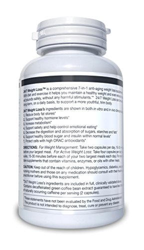 Studio : Health Direct Publisher : Health Direct Binding : Health and Beauty Product Description 24/7 Weight LossTM is a comprehensive 7-in-1 anti-aging weight loss supplement. With diet and exercise it helps you maintain a healthy weight and even reduce unwanted pounds safely, without any harmful stimulants. 24/7 Weight Loss can be used long-term, on a daily basis, to support a more youthful, trim body. 24/7 Weight Loss's ingredients are shown in both in vitro and in vivo clinical studies to: #1 Reduce body fat stores #2 Support healthy hormone levels #3 Increase metabolism #4 Support satiety and help control emotional eating #5 Decrease the digestion and absorption of sugars, starches and fats #6 Support healthy blood sugar and insulin within normal levels #7 Protect cells with high ORAC antioxidants.. 0