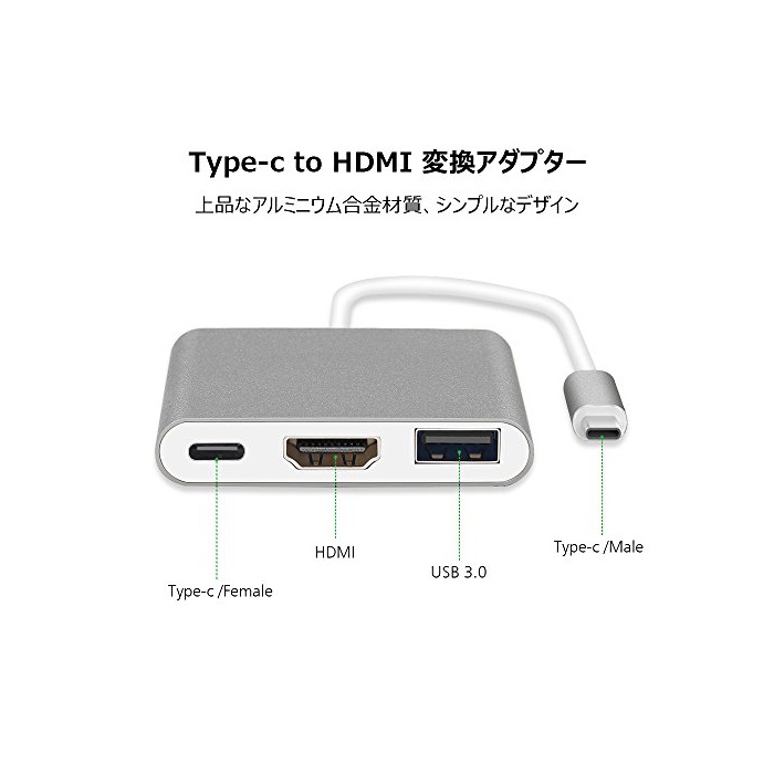 【3개의 포토】:본체에는 USB포토,HDMI포토,Type-C포토가 각 하나 탑재되어 있습니다. 닌텐도 스위치 본체,Type-C노트 PC,iPad등에 대응 하고 있습니다.