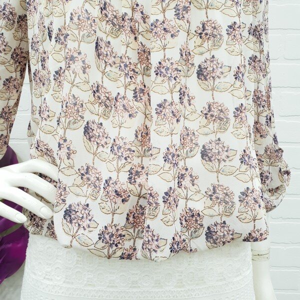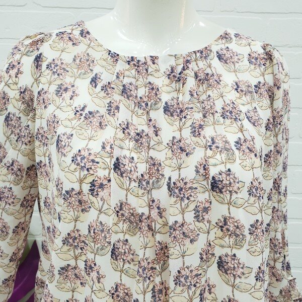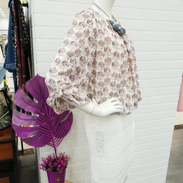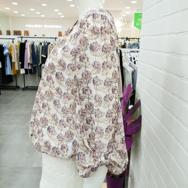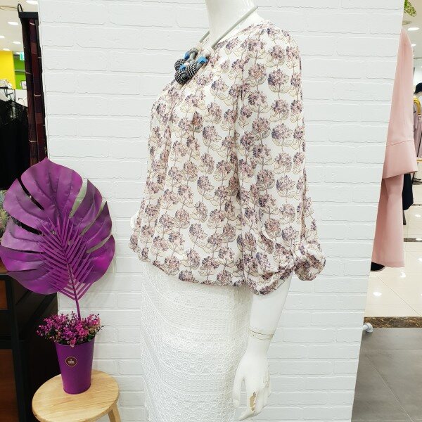 핑크~핑크한 회사한 플라워 프린트 블라우스예요.목선의 주름이 너무 예쁘게 들어가있어 여성스러움주며 소매단의 리본으로 포인트를 준 밑단 마무리가 너무 예뻐요.허리단은 밴드로 들어가 있어 벌룬형 느낌이 연출되는 블라우스예요.스커트랑 너무 예쁘게 잘어울리며 가볍고 편해요.