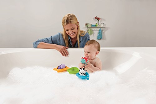 - Bright colors, tactile water play, and 3 floating animal squirter friends for tubtime play help stimulate baby's senses