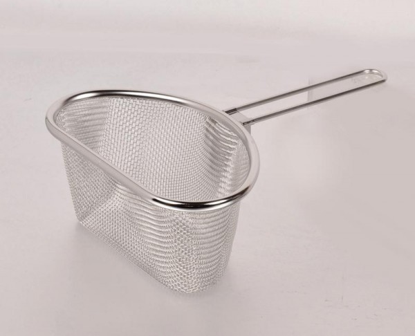丈夫で衛生的なステンレス製の手付きゆでザル。