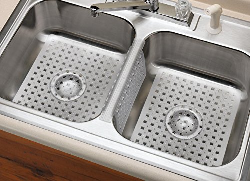 -. Feature : Cushions dishes and protects sink from scratches / Includes 2 standard-size mats (13" L x 9 1/2" W) plus a saddle mat (11 1/2" L x 9 3/8" W / Clear rubber;