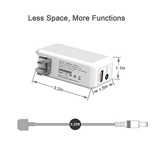 -. Binding : Personal Computers -. Brand : Wakeach -. Color : white -. Feature : ULTRAL LIGHT AND SUPER PORTABLE: Compact design with detachable cable and foldable plug for convenient storage. Perfect companion charger for travel, especially for business on the go / 50W TOTAL CHARGING POWER : Ultra-fast inline 2.4A USB charging port for smartphones /tablets. Charge your 45W MacBook and USB devices at the same time / POWER SPECS: Input Volt Range: 100 - 240V / Laptop Output: 14.5V ¨C 14.85V 3.1A Max, 45W / USB Output: 5V 2.4A / DC cord: 5.9ft / Connector: Magnetic 1 L-Shaped ( Enter ¡°B072M7H87T¡± to search 45W Magnetic 2 charger) / COMPATIBILITY: Apple MacBook Air 11¡± 13¡± manufactured from Late 2008 to Mid 2011: A1374 / A1244 / A1370 / A1369 / A1269 / A1270 / A1237 / A1304 / HAPPY GUARANTEE: We are working hard toward your 100% satisfaction, so if You Do Not Like Our Product or Don¡¯t Want it for Any Reason, We Will Happily Accept The Return and Give Your Money Back Within 15 Days ¨C 12 Months Long Hassle-free Warranty Service (Note: Please check if this charger is compatible with your computer before purchasing. Compatible computers are listed as following) -. Label : Wakeach -. Manufacturer : Wakeach -. PackageQuantity : 1 -. ProductGroup : PC Accessory -. ProductTypeName : COMPUTER_ADD_ON -. Publisher : Wakeach -. Studio : Wakeach -. Title : Wakeach Power Charger w/ USB Ports
