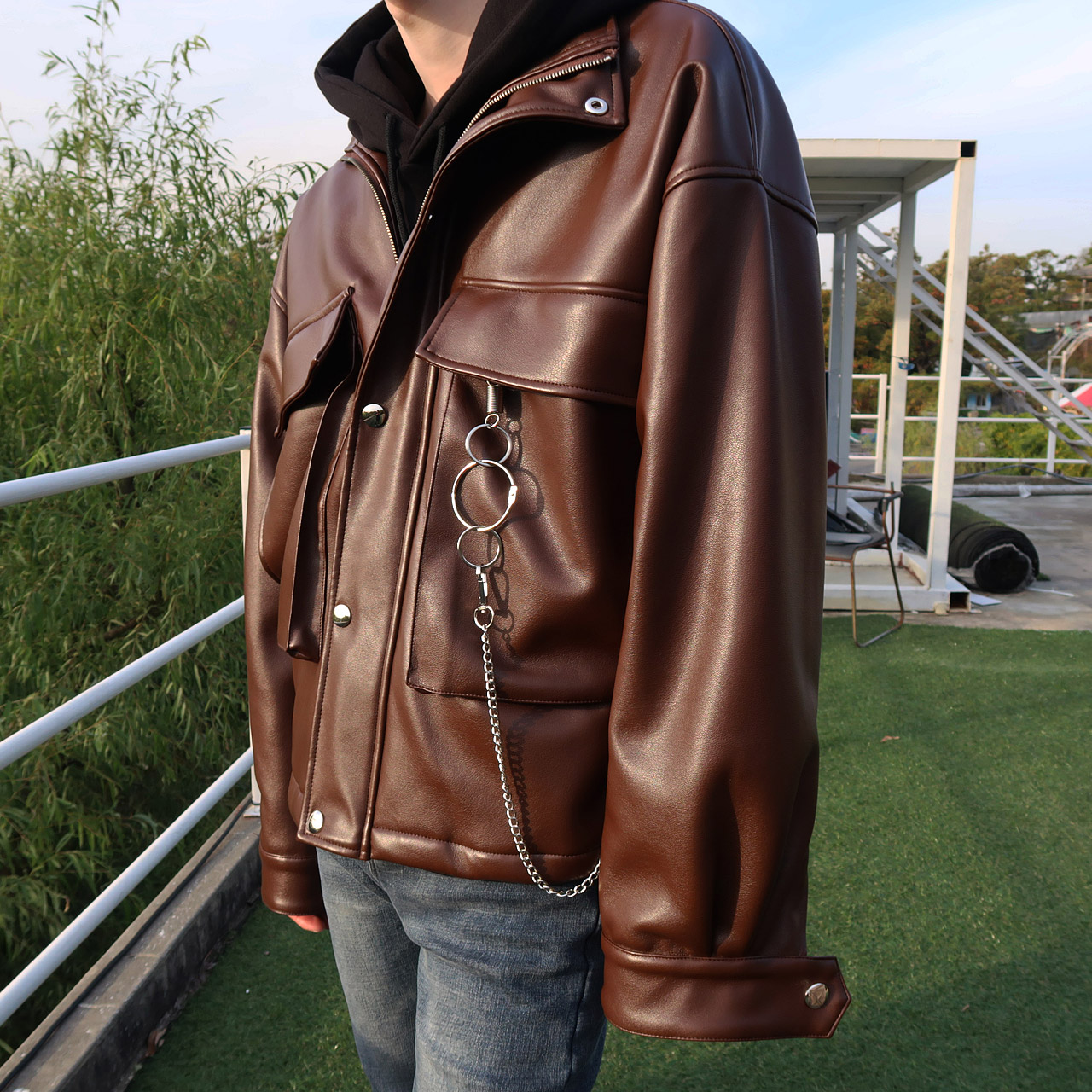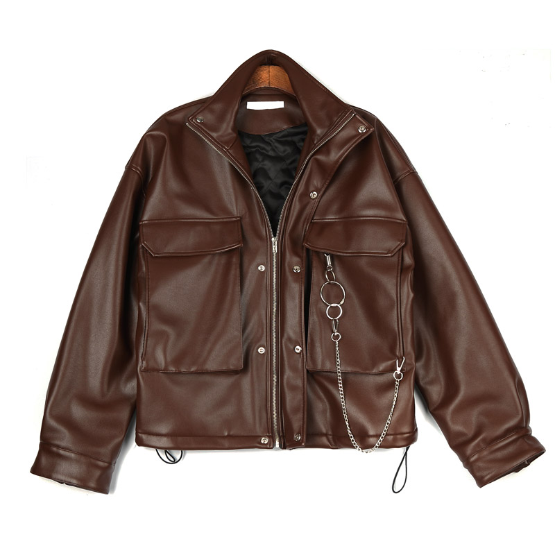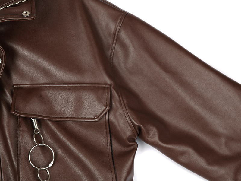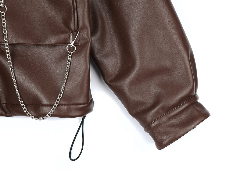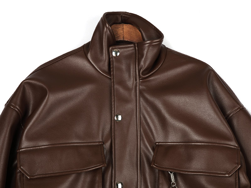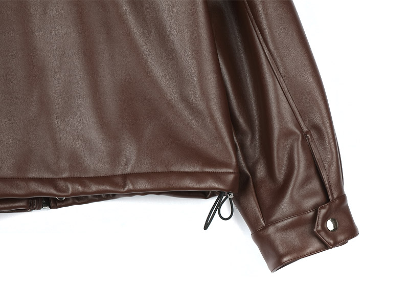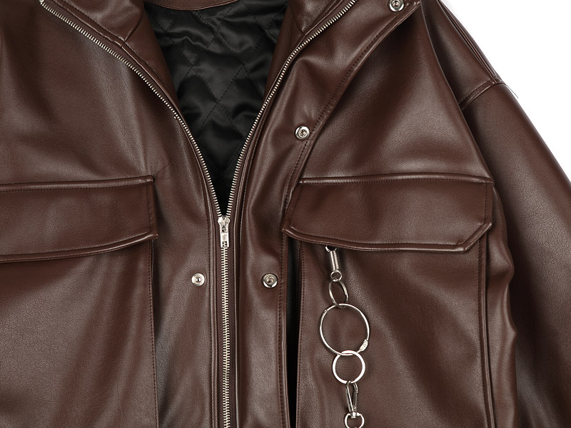 브라운 키링 오버핏 레더 점퍼