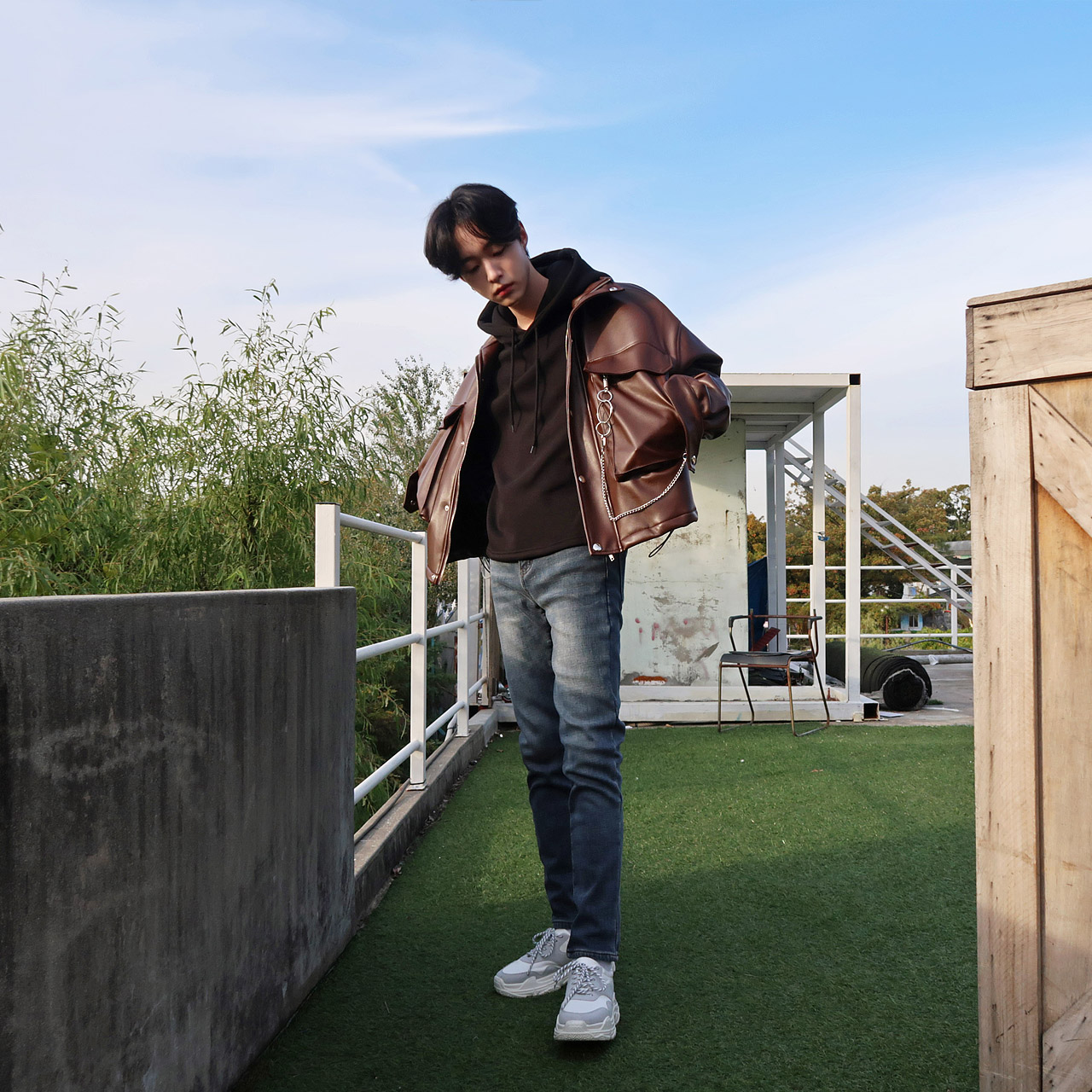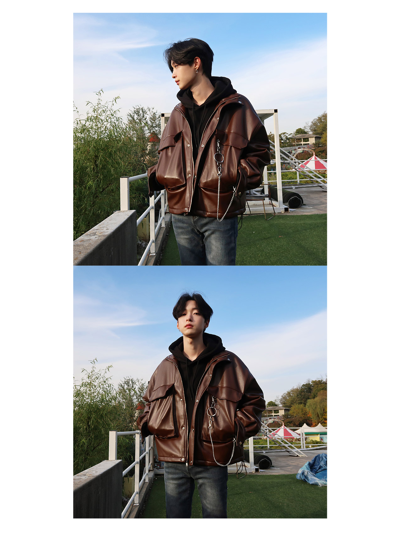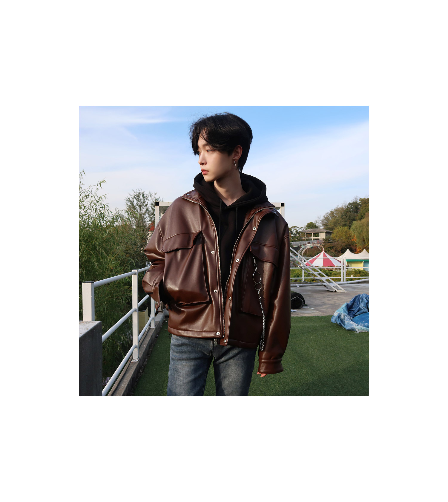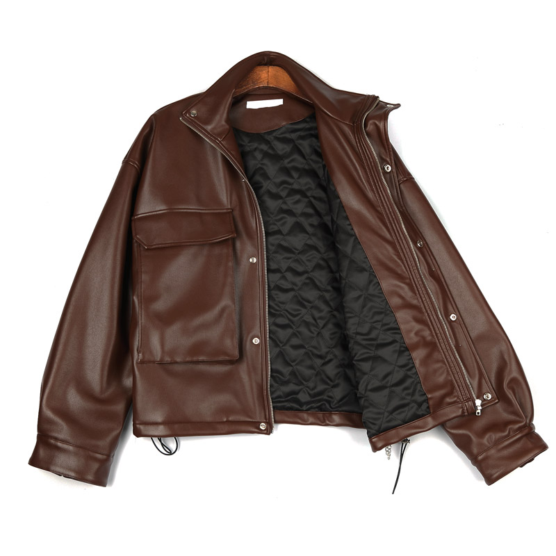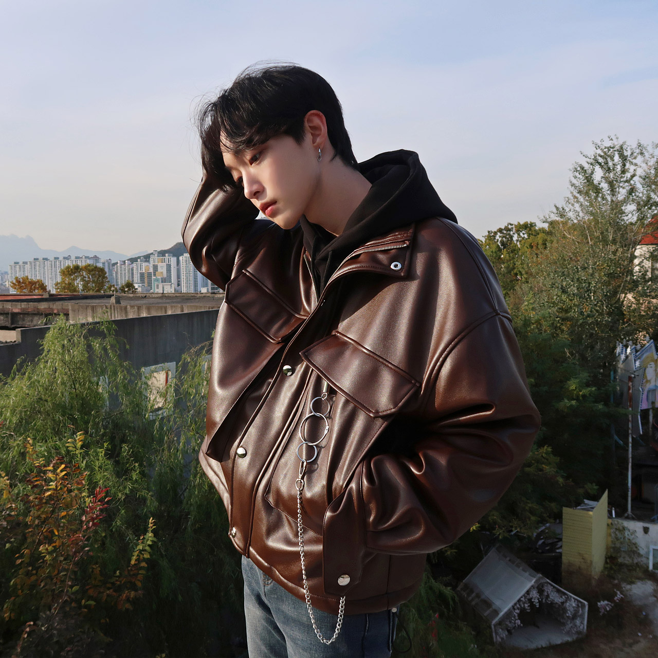 브라운 키링 오버핏 레더 점퍼