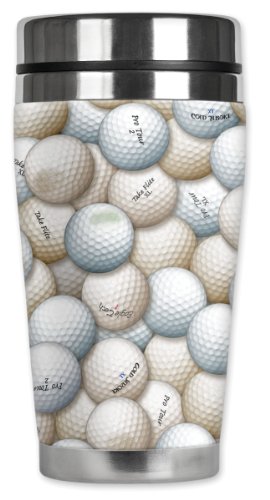 Mugzie Golf Balls Travel Mug with Insulated Wetsuit Cover, 16 oz, Black
