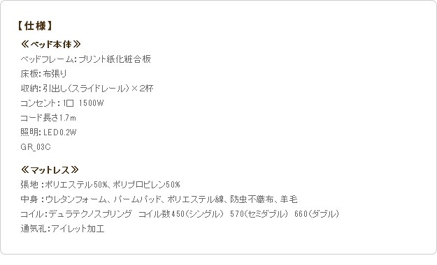 【セット構成】ベッドx1・マットレスx1