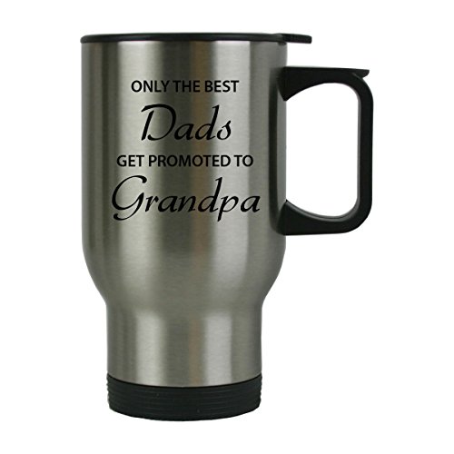 Only the Best Dads Get Promoted to Grandpa 14 oz Stainless Steel Travel Coffee Mug - Great for Father's Day, Birthday, Christmas Gift for Dad, Grandpa, Grandfather, Husband (Silver) by CustomGiftsNow