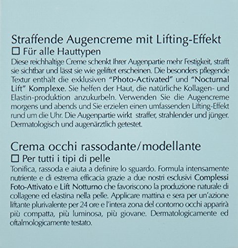 ReleaseDate : 2017-08-03 Studio : Mainspring America, Inc. DBA Direct Cosmetics Publisher : Mainspring America, Inc. DBA Direct Cosmetics Binding : Health and Beauty Product Description An intensely nourishing. re-contouring eye cream. Helps lift and re-define eye contours. Contains exclusive Photo-Activated and Nocturnal Lift Complexes. Helps enhance skin's natural collagen and elastin production. Developed with light-diffusing optics that instantly blur the look of fine. dry lines. Unveils a firmer. sleeker. more radiant and younger looking eye area. 0