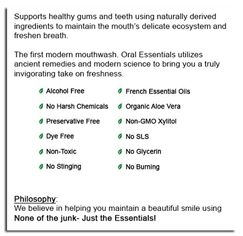 100% 30 DAY MONEY BACK GUARANTEE: A High End Mouthwash, this artisanal formula combines French essential oils with organic aloe vera juice and salt from the Dead Sea to create one of the most forward thinking oral care blends available anywhere. Our pure and unrefined ingredients are hand picked by some of the top dentists in the country as a daily use product, to create a synergistic environment in the mouth.
