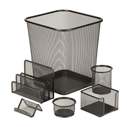 Honey-Can-Do 6-Piece Powder Coated Steel Mesh Desk Set, Black