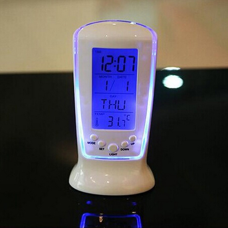 New Blue Led Back Lighting Music Alarm Clock, Digital Temperature Date Time Desk Hour For Hone Decor