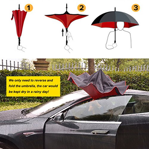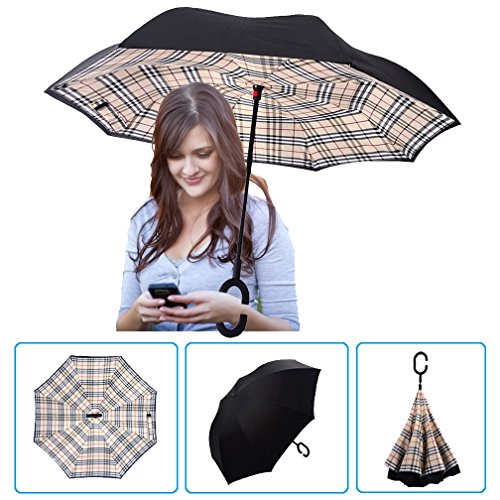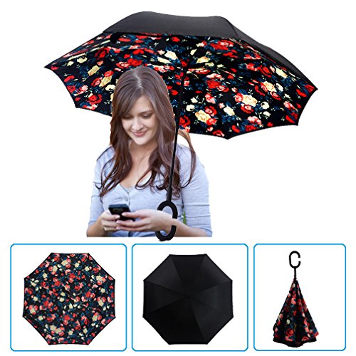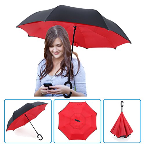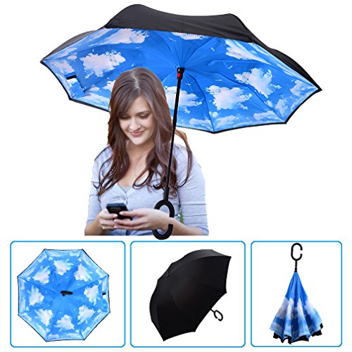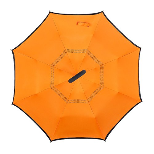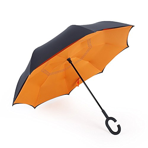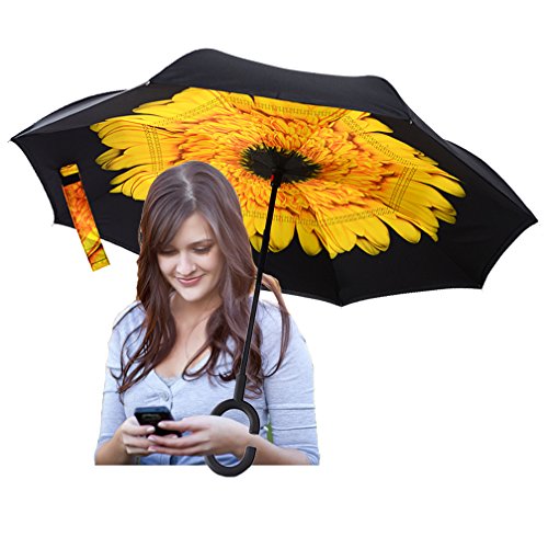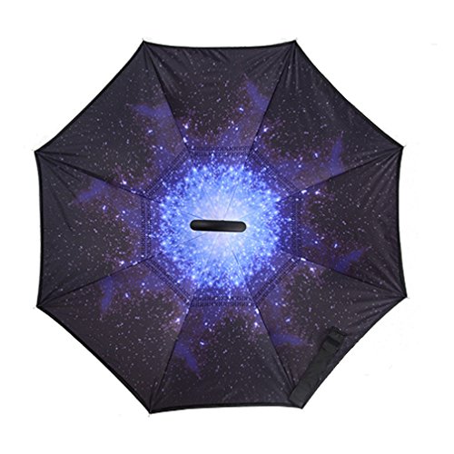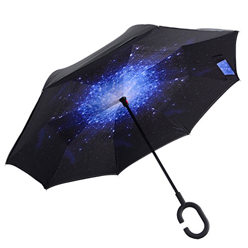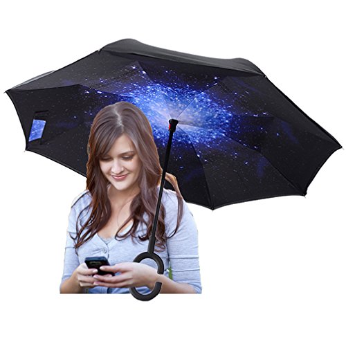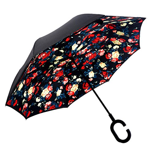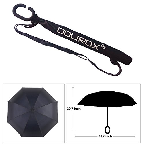 Studio : DOLIROX Publisher : DOLIROX Binding : Misc. Product Description Have you ever encountered such a problem in rainy days? When you jump on a crowded train after escaping a downpour your dripping wet umbrella usually brushes up against your bag, your clothes or -even worse- a stranger. But by inverting the design, the wet side of the umbrella faces inward when closed, exposing only the dry side. And that's not all: the creative design makes it easier to open when coming out of a car or other covered area, and when not in use the umbrella can stands up on its own! Innovative inside out design It adds a nice twist to our classic umbrella by turning inside-out when you're not using it. In this way, the dry inner side of the umbrella comes on the outside, keeping the wet side away to keep you dry when you make it in from the rain. Easy to operate and safe to use With a simple click of the embedded button, you can open and close the umbrella in confined spaces when entering or exiting a building or car and it's less awkward and more safer to open and close when in crowds, since the danger to poke in people's eyes has been removed by the design. Convenient to place and drip free It can stand up on its own, ideal for when you have nowhere to prop your umbrella up against. It will also keep the wet part of the umbrella inside once you've closed it, so things don't get dripped on when you put it away after coming indoors. Durably windproof The straight umbrella easily slices through all winds. Due to its aerodynamic design, the umbrella always finds the most comfortable position in the wind which makes it exceptionally pleasant to use, even in strong gales. If the canopy flips, it can be rectified at the push of a button. Package Contents: 1 * Creative inverted umbrella 1 * Cloth umbrella cover 0