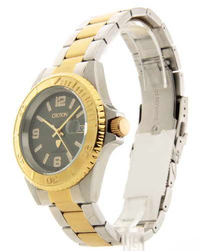 -. Title : Croton Mens Two-Tone Stainless Steel & Ip Gold Date Casual Watch Ca301252ttgy