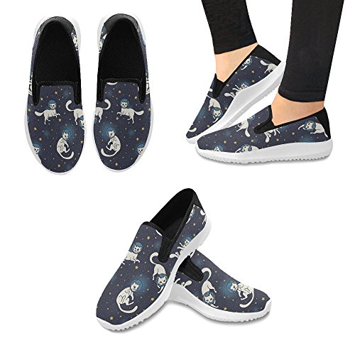(InterestPrint)/Women's/Loafers Slip-Ons/DIRECT FROM USA/InterestPrint Cosmic Cute Doodle White Cat Astronauts Floating In Space Women's Slip-On Loafer ...